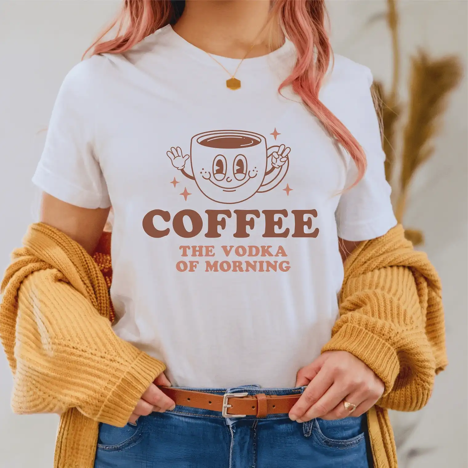 Mornings are hard. Coffee makes them slightly less tragic. This soft, ultra-relatable tee lets the world know that your morning survival strategy is basically liquid courage—just in caffeine form.